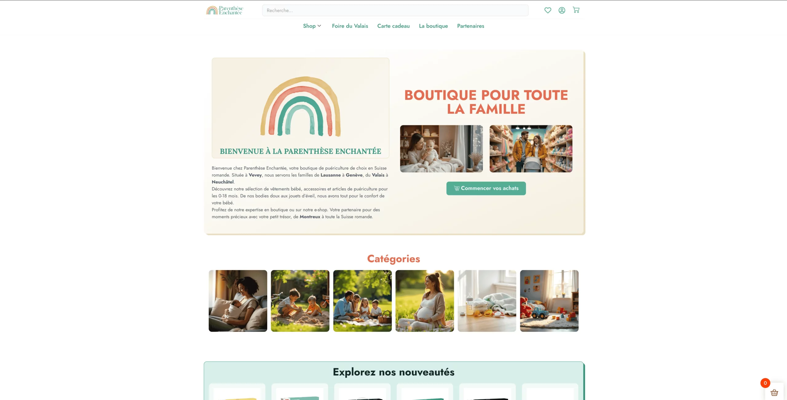 Nous avons été mandatés pour réaliser la refonte complète du site e-commerce de Parenthèse Enchantée, boutique spécialisée en puériculture à Vevey. Nous avons facilité la navigation, amélioré l’expérience utilisateur et optimisé le site pour les moteurs de recherche de manière naturelle. Grâce à une structure SEO intelligente et un design moderne, le site offre une meilleure visibilité organique. Les parents de Lausanne à Genève trouvent maintenant facilement les articles de qualité pour leurs bébés de 0-18 mois.