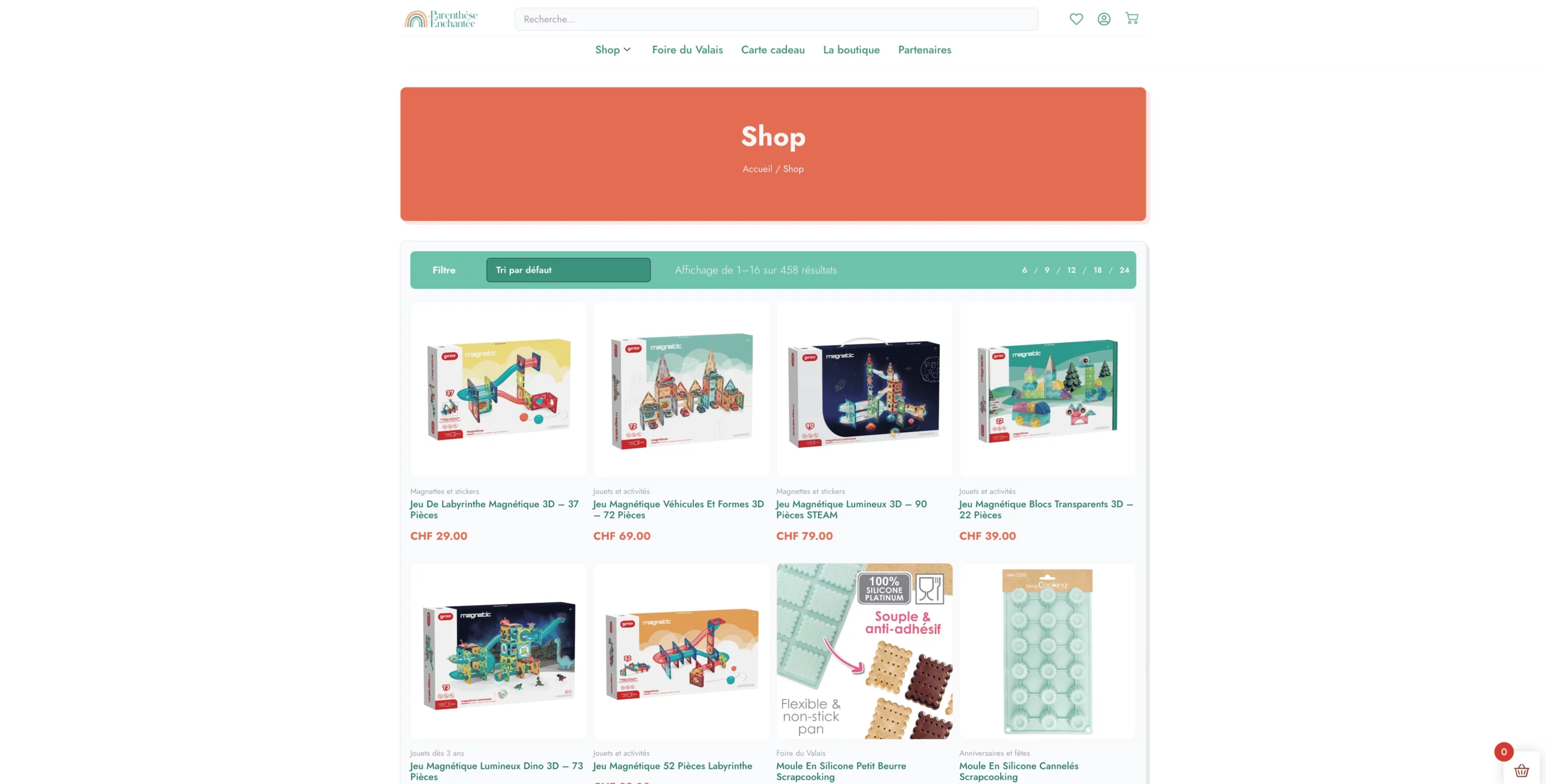 Notre mission était de transformer le site e-commerce de Parenthèse Enchantée en une plateforme intuitive et bien référencée. Nous avons restructuré l’architecture du site pour améliorer la navigation, optimisé les mots-clés de manière naturelle et implémenté les meilleures pratiques SEO pour améliorer la visibilité organique aux parents suisses romands.